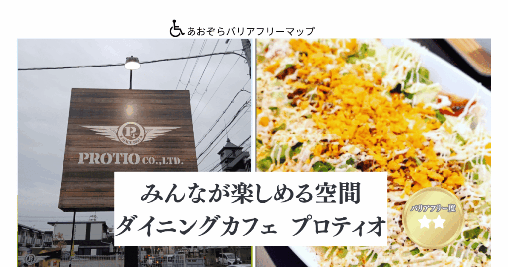 八尾市久宝寺のダイニングカフェ「プロティオ」を作業療法士がバリアフリー調査!入口は段差ゼロの幅90cm、店内も通路幅1m以上と広く、車椅子やベビーカーでの移動が非常にスムーズです。乳児連れには個室での授乳やおむつ交換の案内があるなど、ホスピタリティも抜群。トイレの注意点やテーブルの実測データなど、お出かけ前に役立つ詳細情報を公開中! -