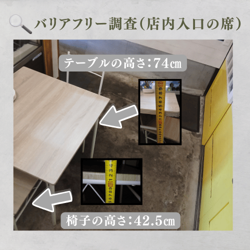 車椅子の方は事前に排泄を済ませて来店すれば、手前の席で食事の方は十分楽しめそうです。
