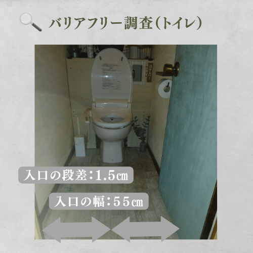 トイレ入口の幅は55㎝ 段差:1.5㎝ 開き戸になります。