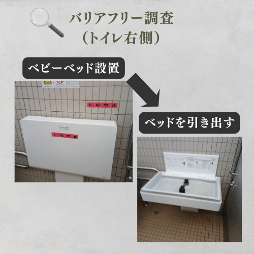 トイレ入って壁の右側にベビーベッドが設置されています。