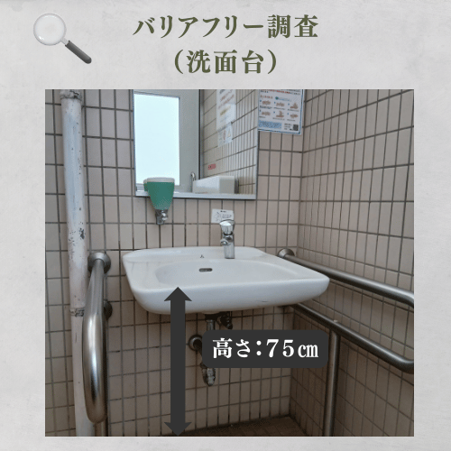 洗面台の下には写真の様にスペースがあります。車いすで洗面台まで近づいて手洗いできます。