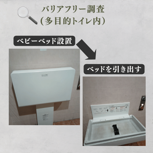 トイレ入って壁の左側にはベビーベッドが設置されています。
