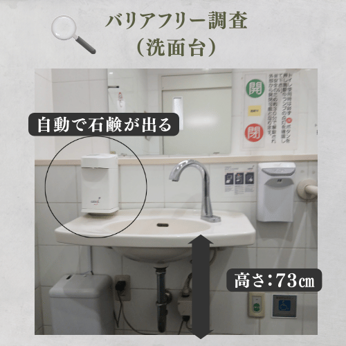 洗面台の高さ:73㎝。手を出すと自動で石鹸も出ます。