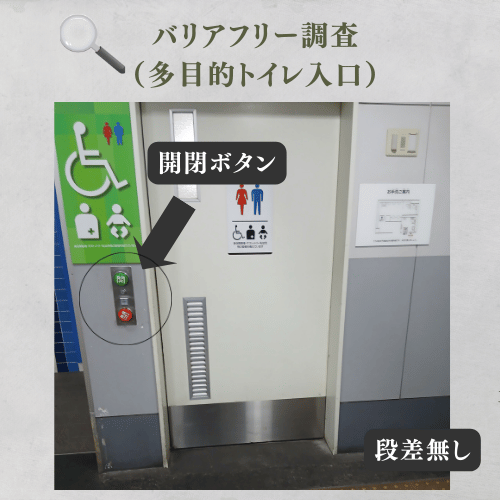 ボタンで自動で開くので車椅子の方もベビーカー使用している方もスムーズに出入りができます。