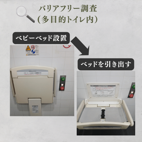 トイレ入口入って左側にはベビーベッドが設置されています。