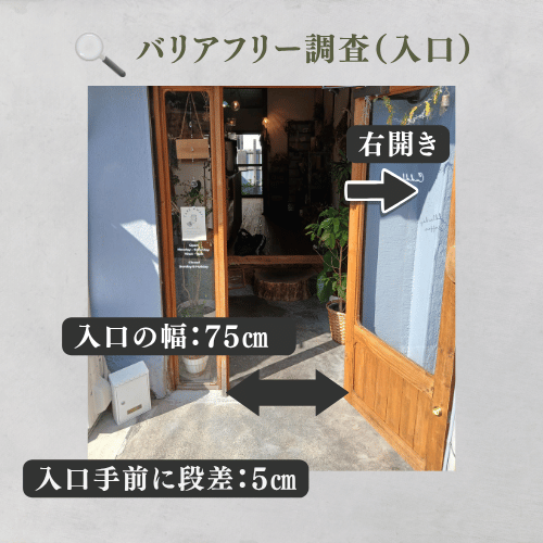 高齢者の方の場合は手すりが無いので、足腰に自信のない方は介助が必要になるかも知れません。車いすでの店内への入店は困難です。
