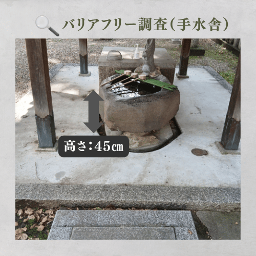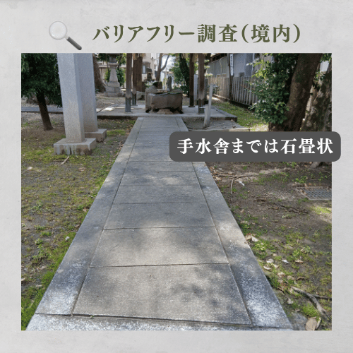手水舎までは石畳状なので、車いす、ベビーカー使用の方も移動しやすい設計です。