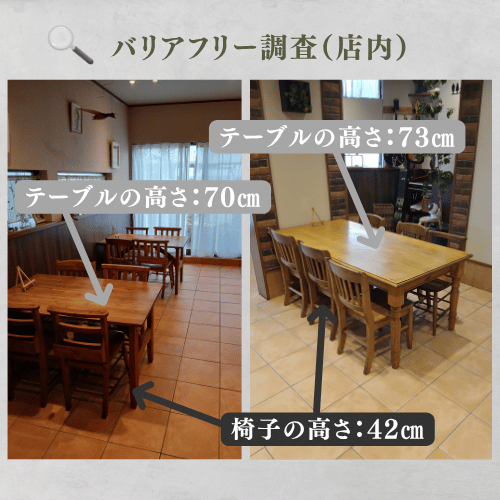 テーブルの高さ:70㎝と73㎝