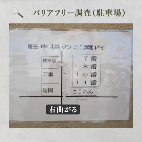 車椅子を利用されている方などの入店の際は、店の前あたりに車を停めて先に降りて頂き、運転手だけ車を駐車場に停めに行かれるそうです。