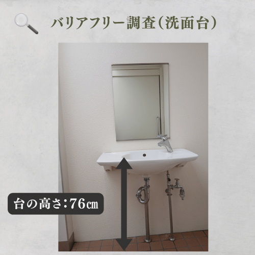 洗面台高76cmは、車椅子の方が膝を入れやすく、立位でも腰への負担が少ない汎用性の高い高さです。