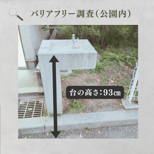 水栓台の高さ93cmは立位で腰を屈めず利用できますが、足元に縁石の段差があるため、前方への転倒リスクに注意が必要です。
