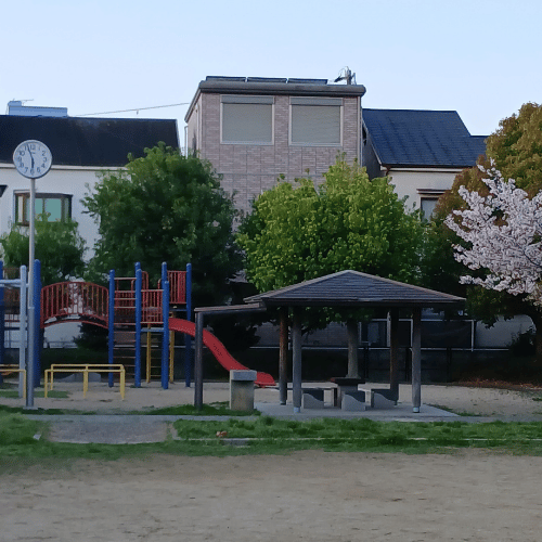 八尾市南本町にある「明美第2公園」は、周囲を住宅に囲まれた、静かで落ち着いた雰囲気の街の公園です。遊具やベンチが適度に配置されており、近隣住民の日常的な散歩コースや、お子様の遊び場として親しまれています。