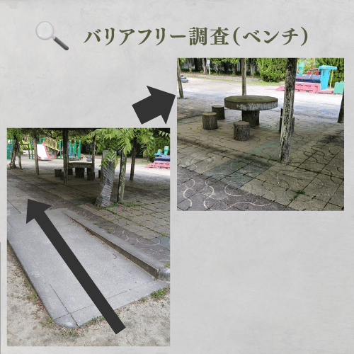 テーブル付きのベンチは、高さ58cmと車椅子のままアプローチしやすい設定です。また、椅子の高さが30cmと43cmの2種類あるのが特徴。43cmのタイプは30㎝の椅子より立ち座りしやすいため、高齢の方や足腰が不安の方におすすめです。公園内での憩いの時間をより快適にしてくれます。